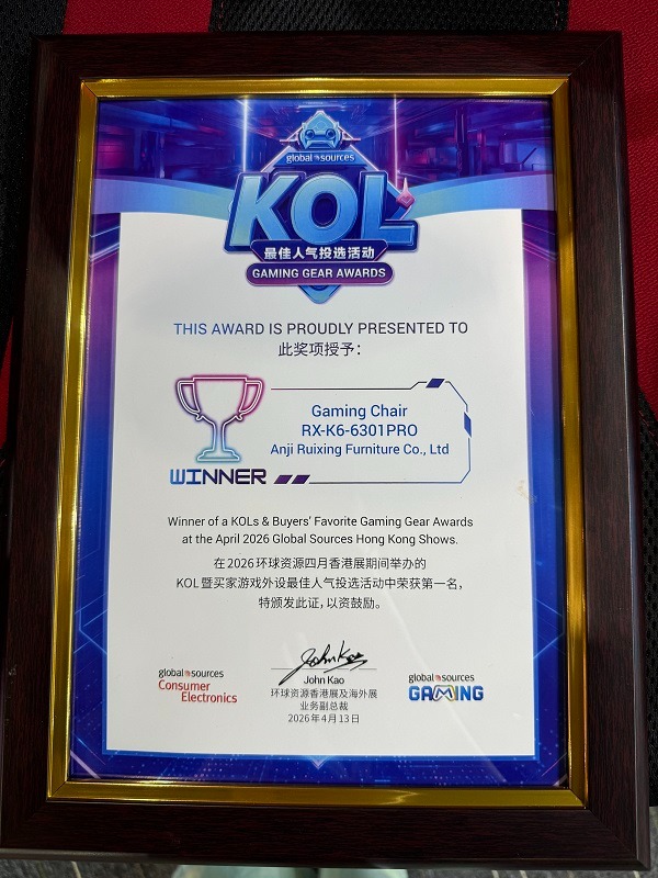 Kami amat berbesar hati untuk mengumumkan bahawa Kerusi Permainan kami (RX-K6-6301PRO) telah memenangi Anugerah Alat Permainan Kegemaran '2026 KOLs & Buyers' pada pameran tahun ini. Sekali lagi, kami telah memperoleh Anugerah Populariti Terbaik KOL, pengiktirafan yang menyerlahkan komitmen kami yang tidak berbelah bahagi kepada kecemerlangan dalam kualiti dan reka bentuk yang canggih dalam industri kerusi permainan. RX-K6-6301PRO, dengan reka bentuk ergonomik yang cemerlang, teknologi canggih dan penampilan yang bergaya, telah mendapat pujian sebulat suara daripada KOL (Pemimpin Pendapat Utama) dan pembeli, memperoleh penghormatan berprestij ini.