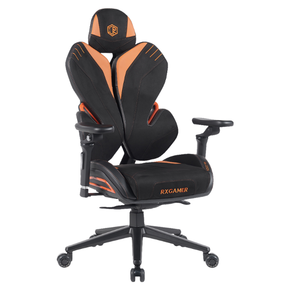 The RXGAMER RX-K6-6201 menggabungkan kombinasi fabrik yang mengimbangi keselesaan dan daya tahan. Reka bentuknya termasuk baldu suede hitam, bahan hitam regangan empat hala dan fabrik jingga ambar. Gabungan ini membolehkan permukaan tempat duduk menyesuaikan diri dengan pergerakan badan sambil mengekalkan penampilan visual yang halus sesuai untuk persediaan permainan moden.